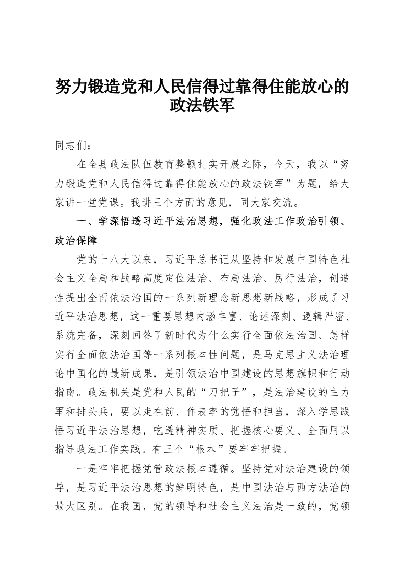 努力锻造党和人民信得过靠得住能放心的政法铁军
