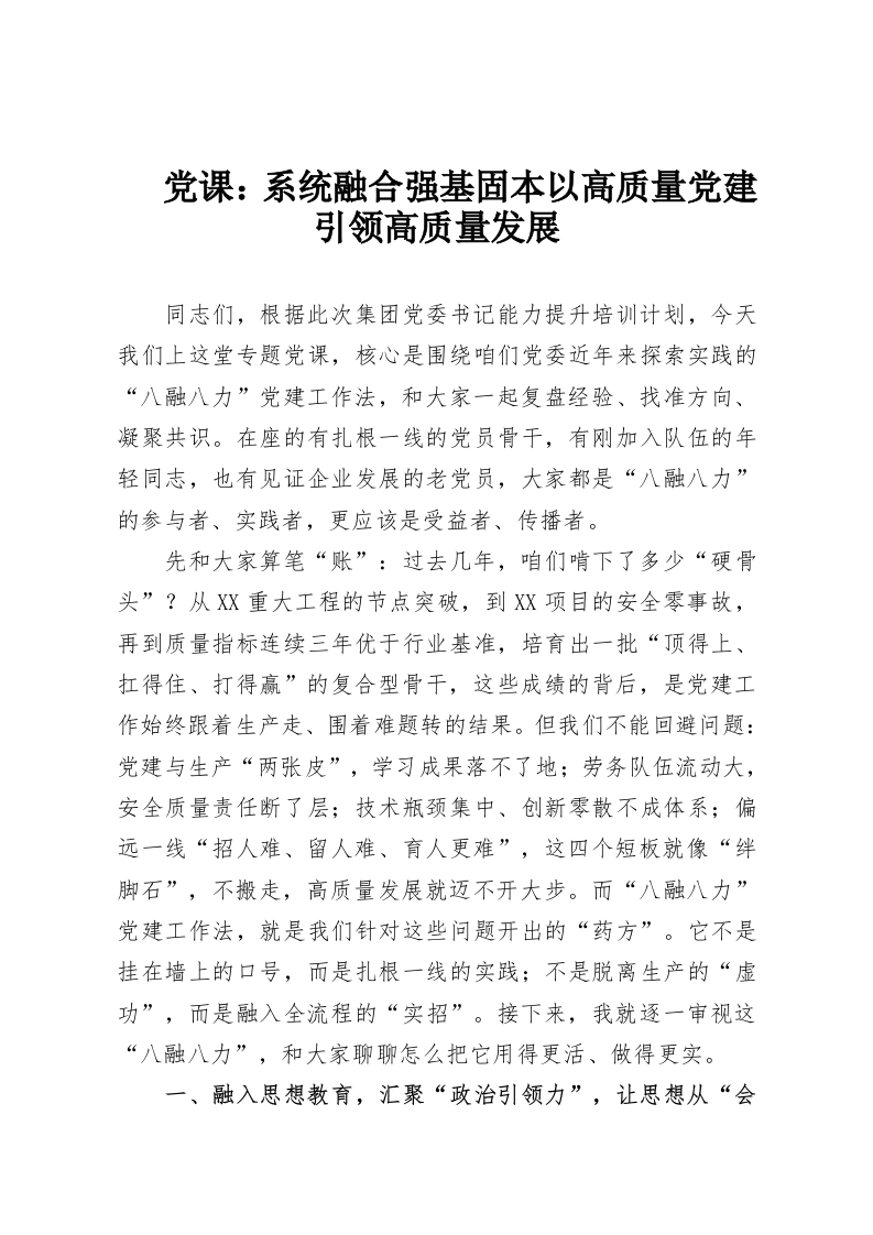 党课:系统融合强基固本以高质量党建引领高质量发展