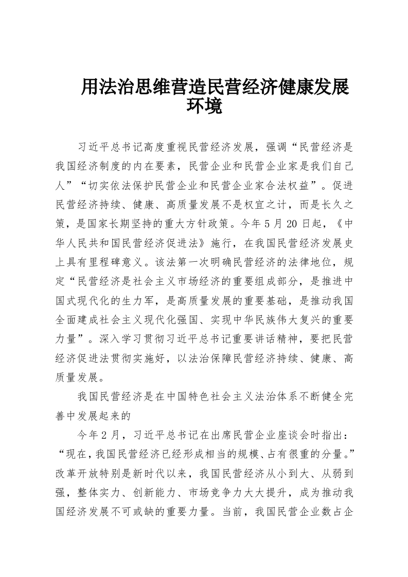 用法治思维营造民营经济健康发展环境