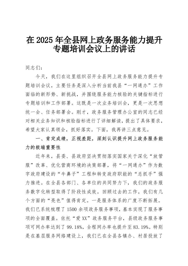 在2025年全县网上政务服务能力提升专题培训会议上的讲话