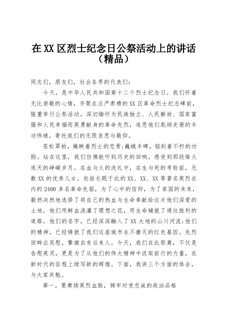 在XX区烈士纪念日公祭活动上的讲话(精品)