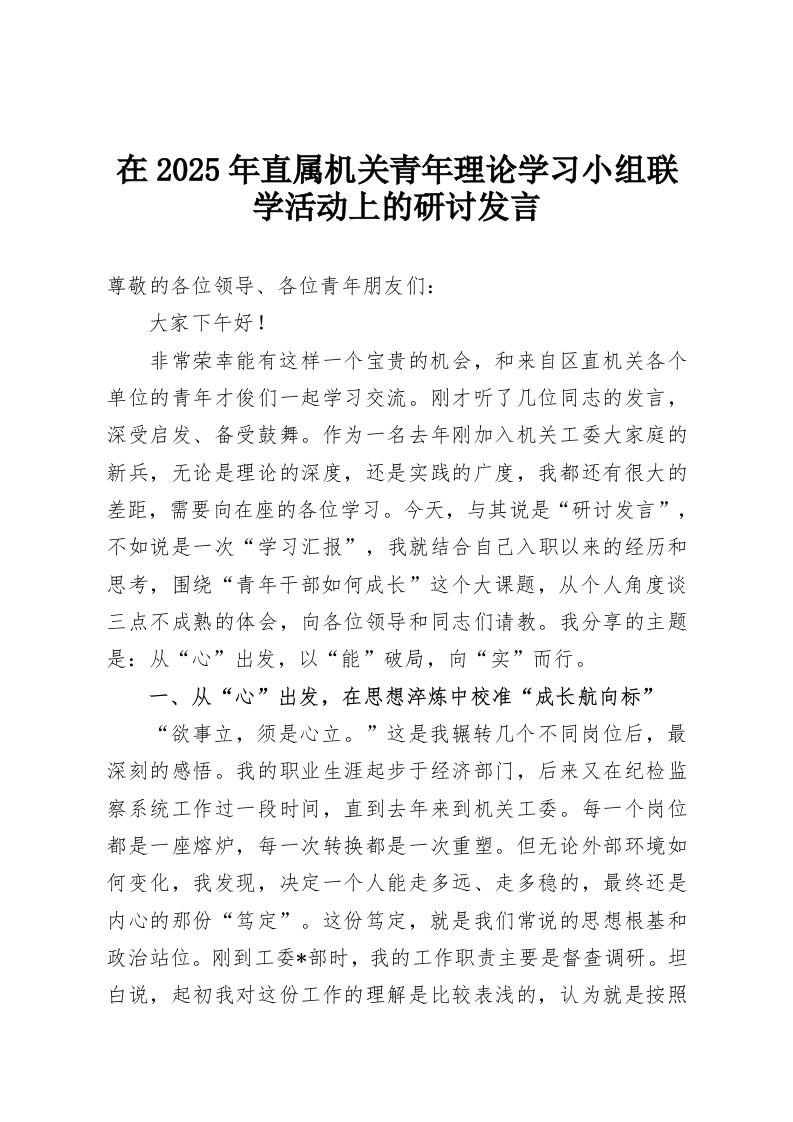 在2025年直属机关青年理论学习小组联学活动上的研讨发言