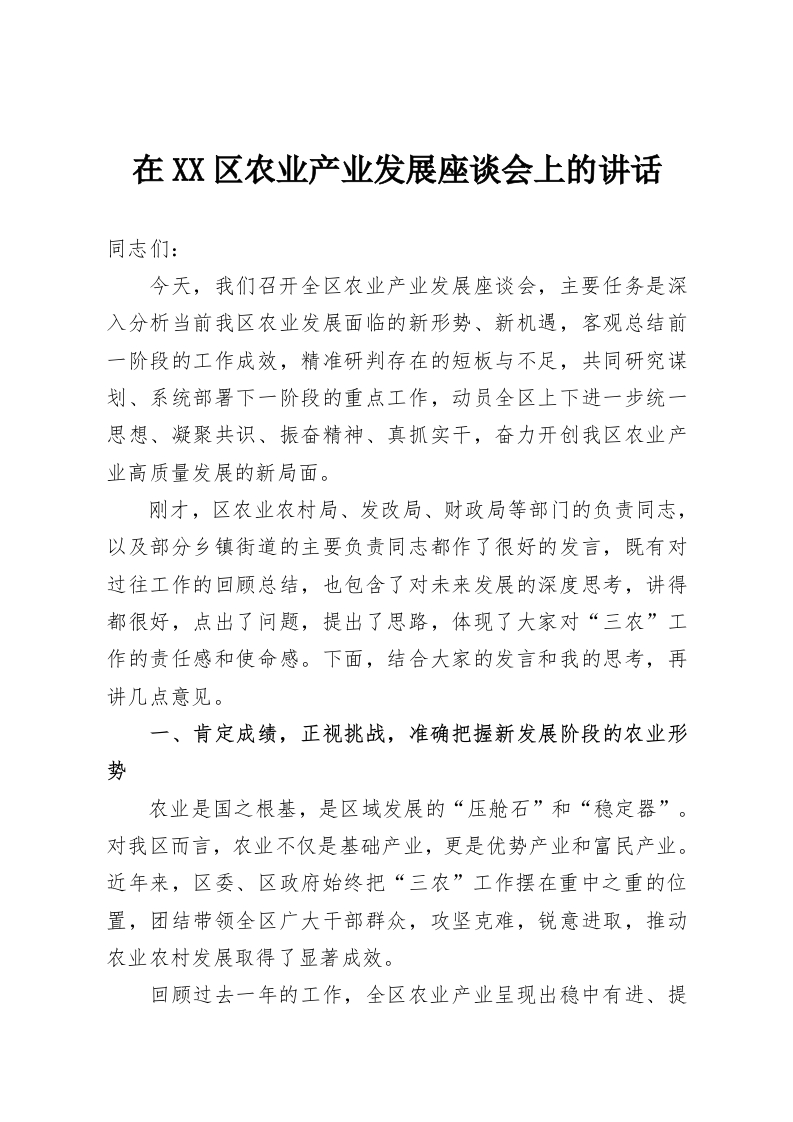 首页学习提升在XX区农业产业发展座谈会上的讲话