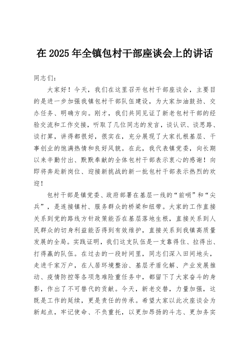 首页学习提升在2025年全镇包村干部座谈会上的讲话