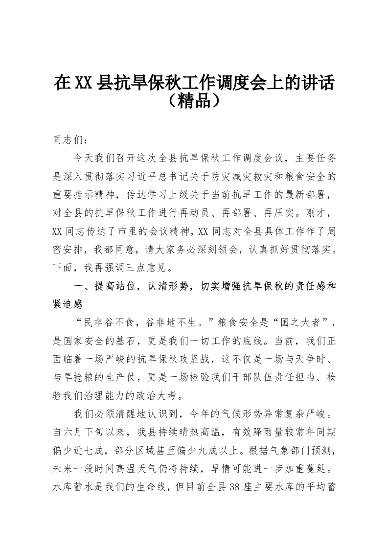 在XX县抗旱保秋工作调度会上的讲话(精品)