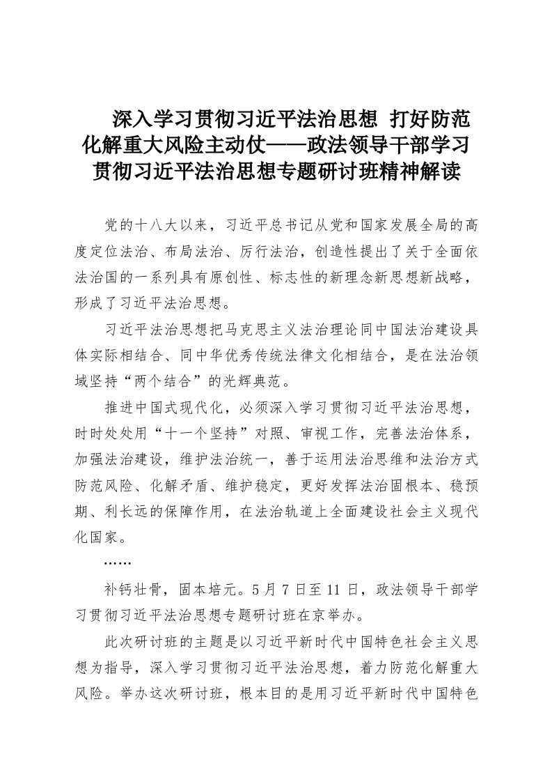 深入学习贯彻***法治思想 打好防范化解重大风险主动仗——政法领导干部学习贯彻***法治思想专题研讨班精神解读