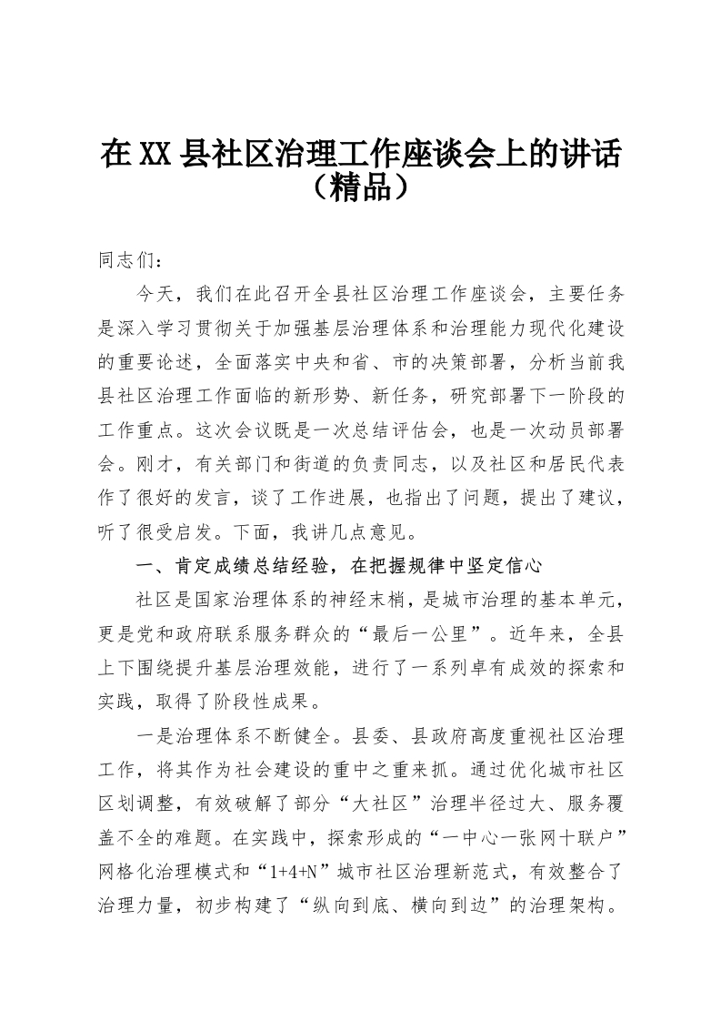 首页学习提升在XX县社区治理工作座谈会上的讲话(精品)