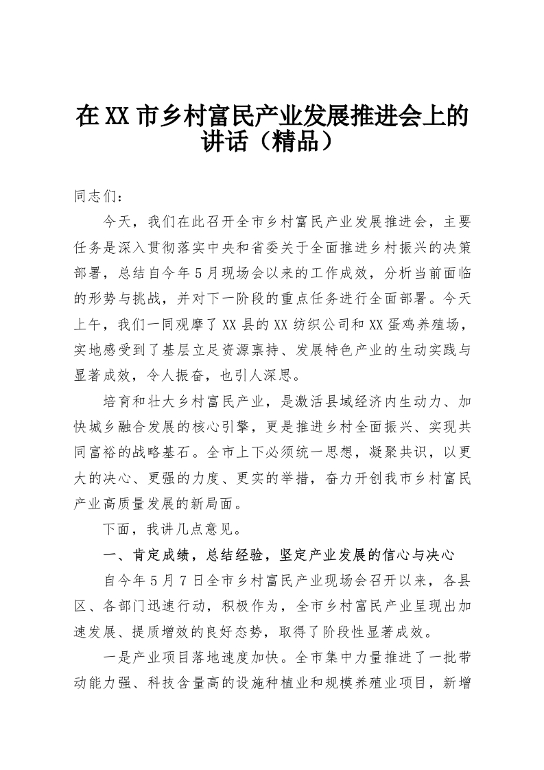 在XX市乡村富民产业发展推进会上的讲话(精品)