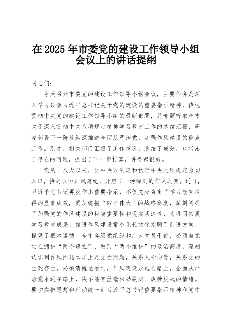 在2025年市委党的建设工作领导小组会议上的讲话提纲