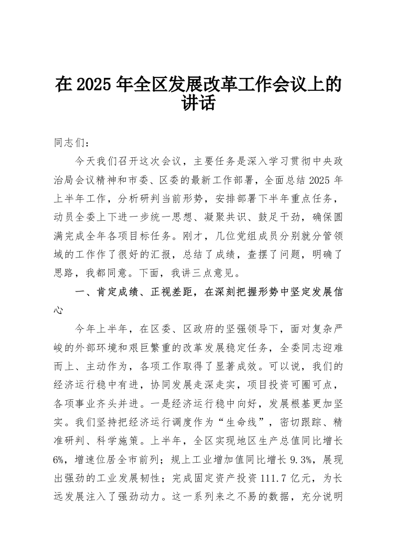 首页学习提升在2025年全区发展改革工作会议上的讲话