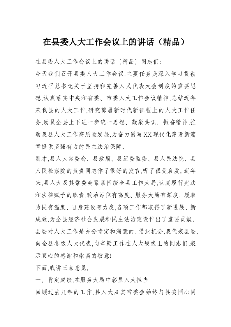 首页精选范文在县委人大工作会议上的讲话(精品)