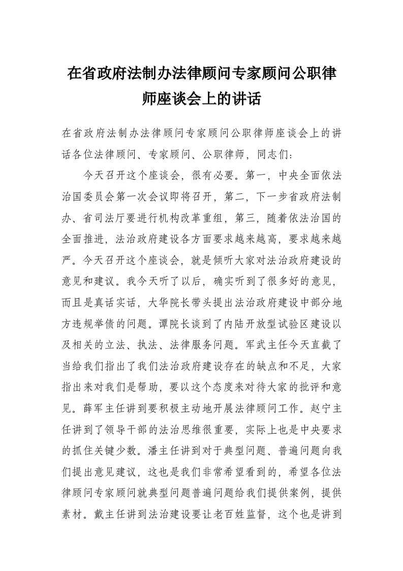 在省***法制办法律顾问专家顾问公职律师座谈会上的讲话