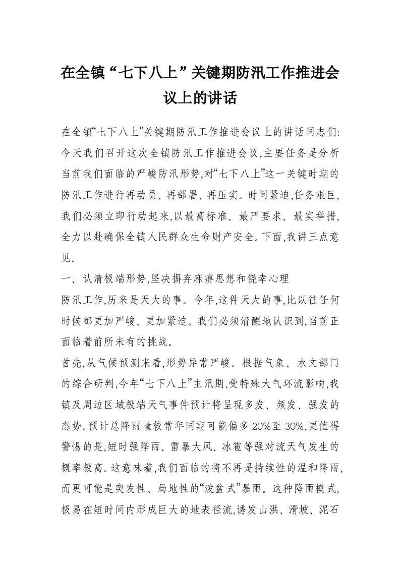 在全镇“七下八上”关键期防汛工作推进会议上的讲话