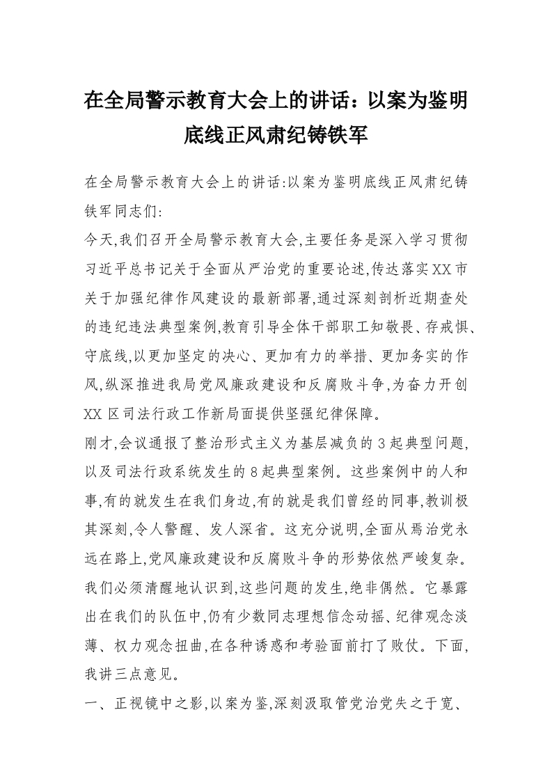 在全局警示教育大会上的讲话:以案为鉴明底线正风肃纪铸铁军
