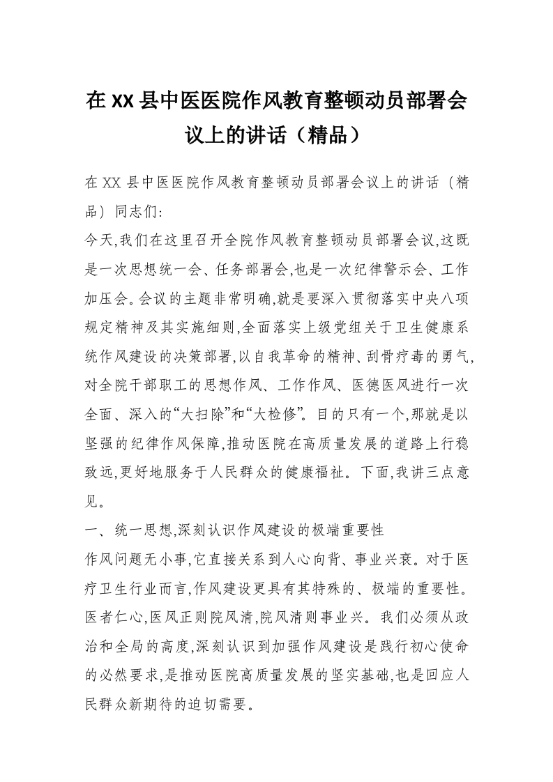 在XX县中医医院作风教育整顿动员部署会议上的讲话(精品)