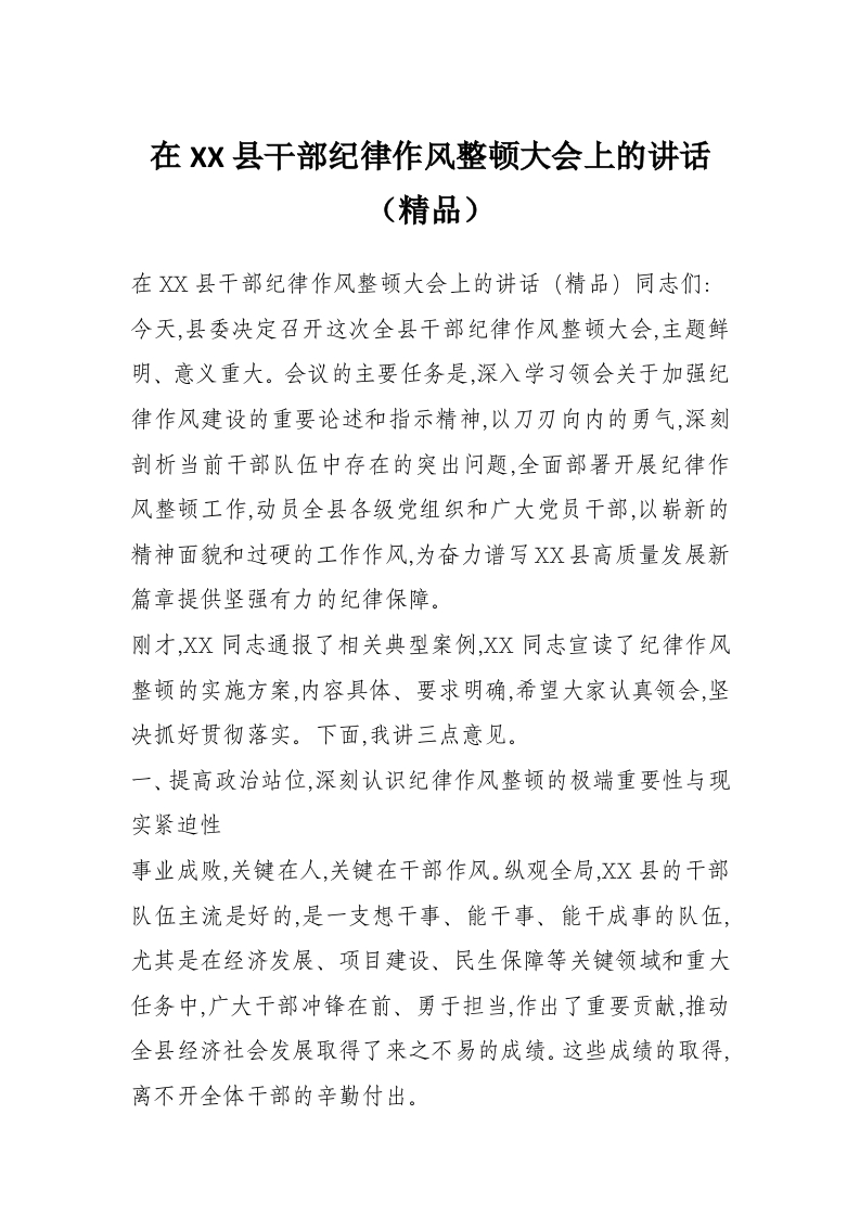 在XX县干部纪律作风整顿大会上的讲话(精品)