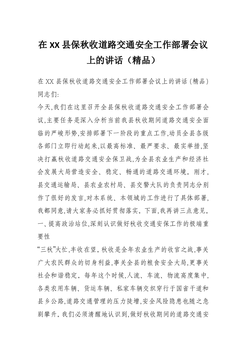 首页精选范文在XX县保秋收道路交通安全工作部署会议上的讲话(精品)