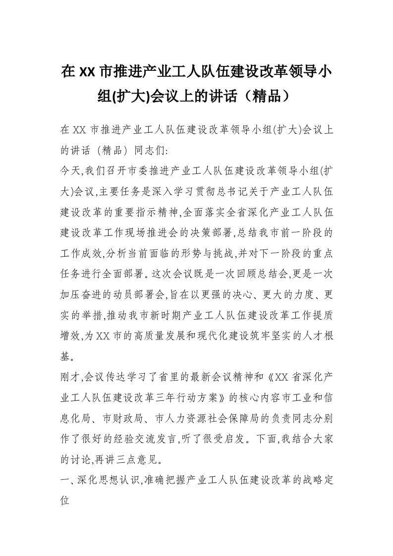 在XX市推进产业工人队伍建设改革领导小组(扩大)会议上的讲话(精品)