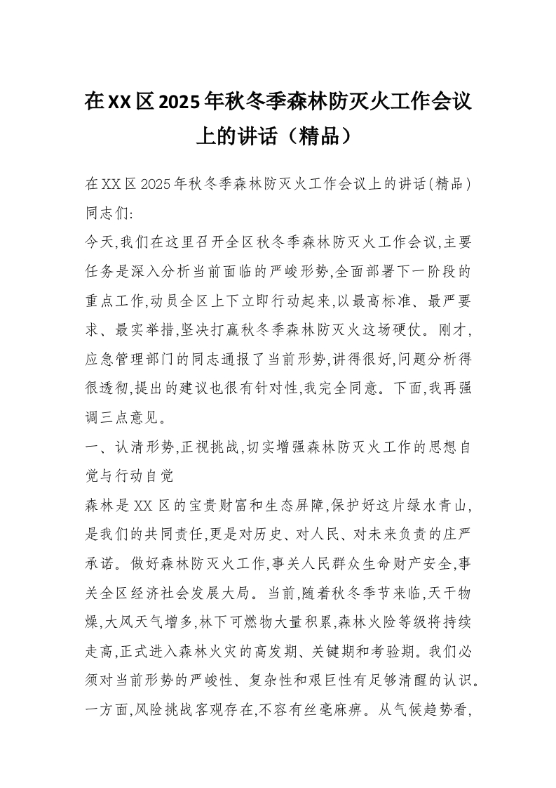 在XX区2025年秋冬季森林防灭火工作会议上的讲话(精品)