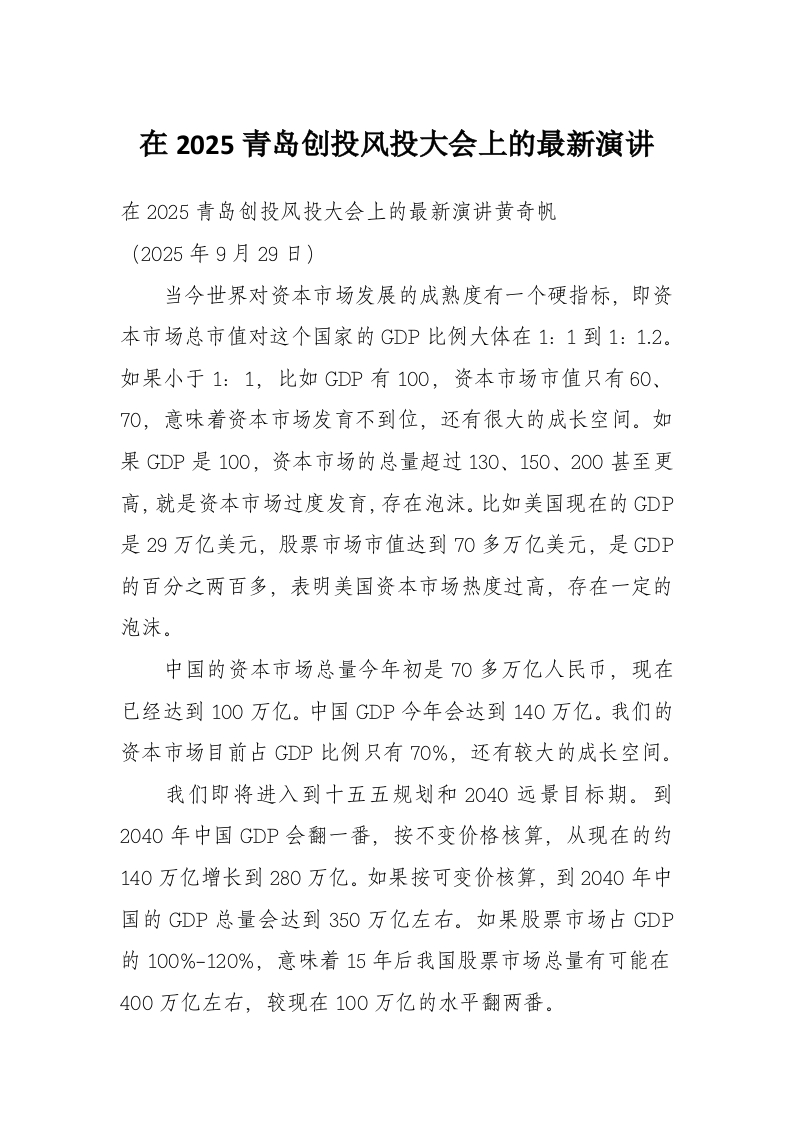 首页讲课讲稿在2025青岛创投风投大会上的最新演讲