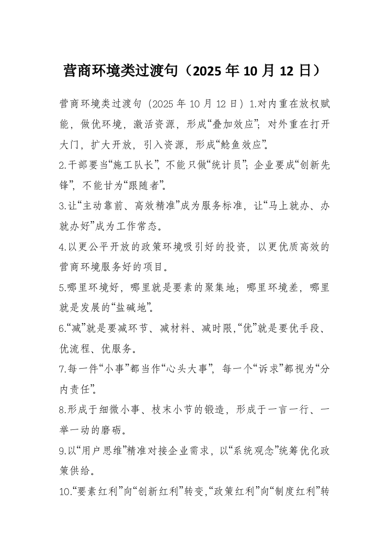 首页每日金句营商环境类过渡句(2025年10月12日)