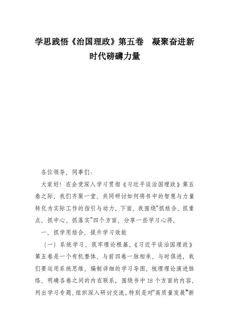首页写作素材学思践悟《治国理政》第五卷 凝聚奋进新时代磅礴力量