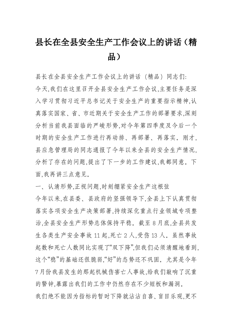 首页写作素材县长在全县安全生产工作会议上的讲话(精品)