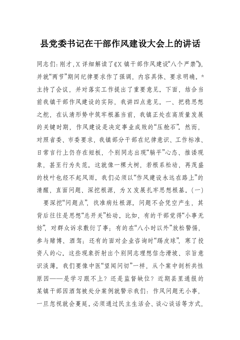首页写作素材县党委书记在干部作风建设大会上的讲话