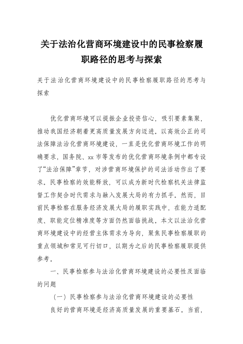 首页写作素材关于法治化营商环境建设中的民事检察履职路径的思考与探索