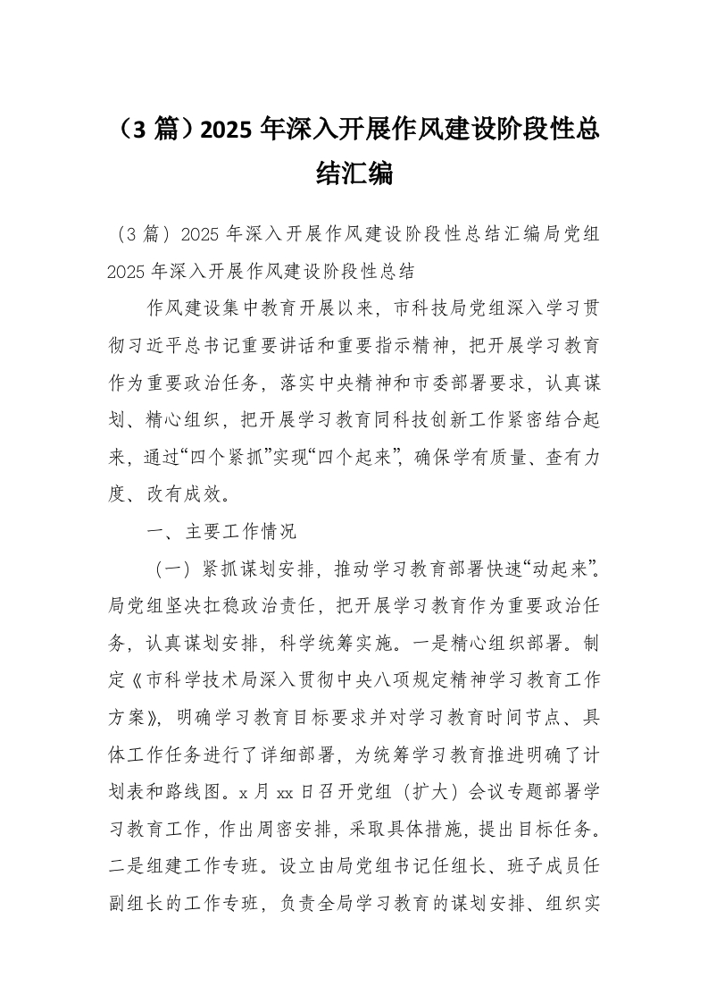 (3篇)2025年深入开展作风建设阶段性总结汇编