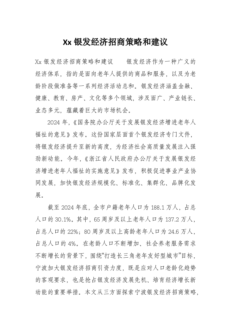 Xx银发经济招商策略和建议