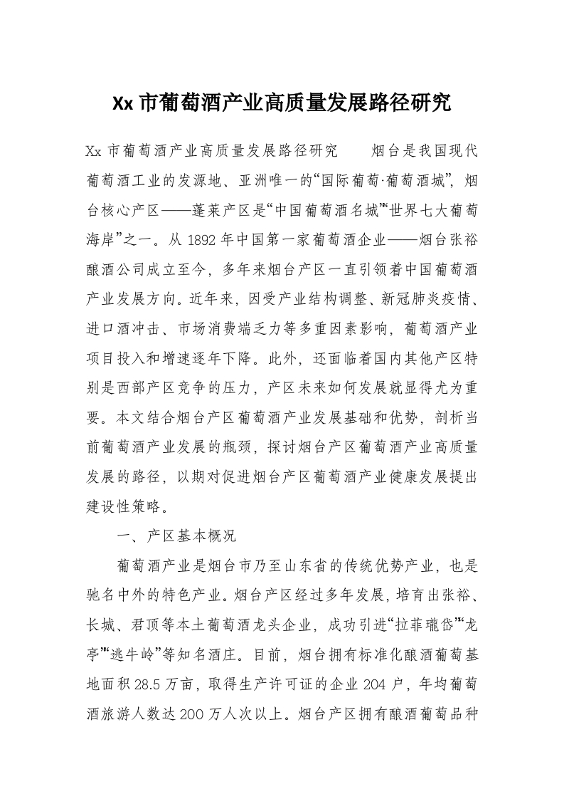 首页材料汇编Xx市葡萄酒产业高质量发展路径研究