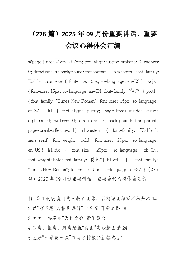 首页材料汇编(276篇)2025年09月份重要讲话、重要会议心得体会汇编