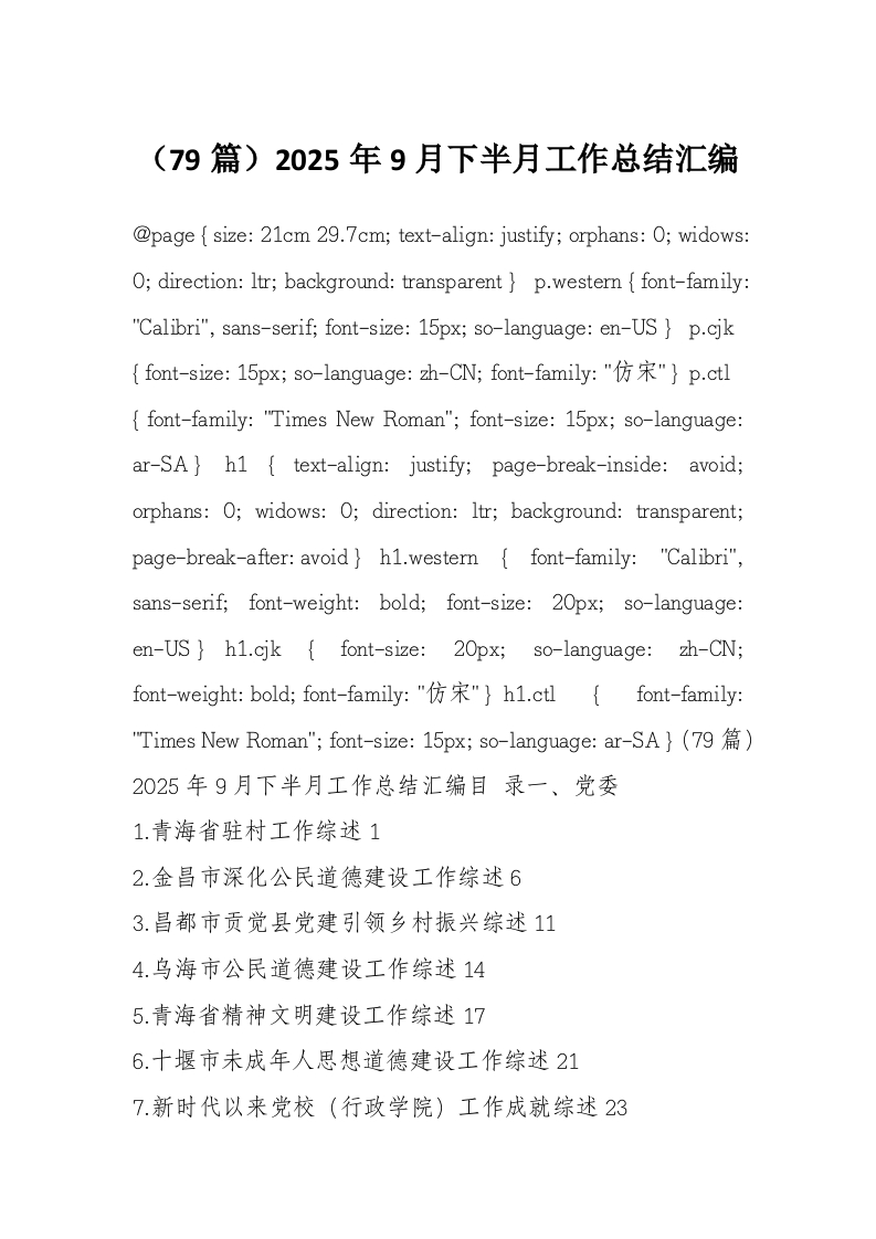 首页材料汇编(79篇)2025年9月下半月工作总结汇编