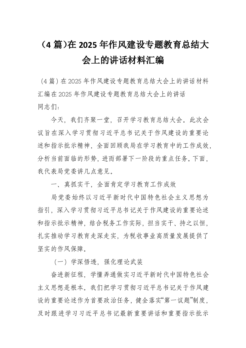 (4篇)在2025年作风建设专题教育总结大会上的讲话材料汇编