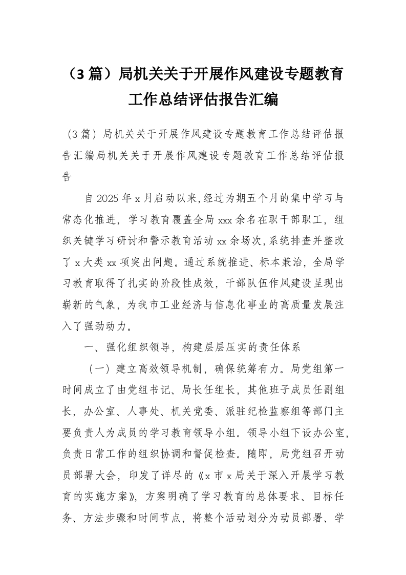 (3篇)局机关关于开展作风建设专题教育工作总结评估报告汇编