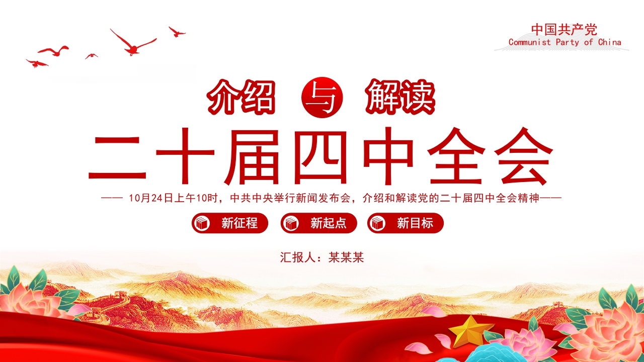 首页PPT模板大气精美介绍与解读二十届四中***精神PPT党课课件