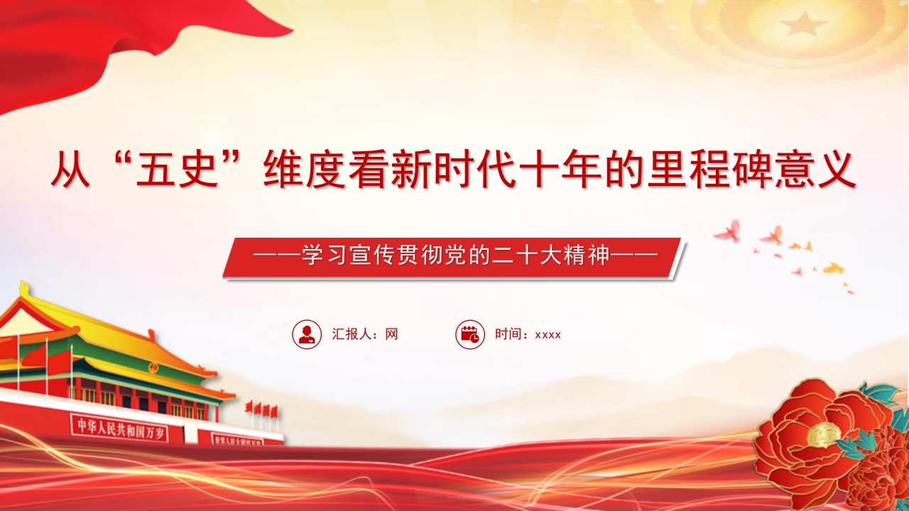 首页PPT模板从“五史”维度看新时代十年的里程碑意义