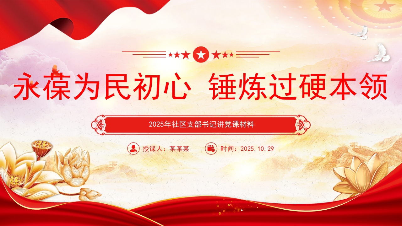 首页PPT模板社区支部书记讲党课PPT永葆为民初心锤炼过硬本领课件
