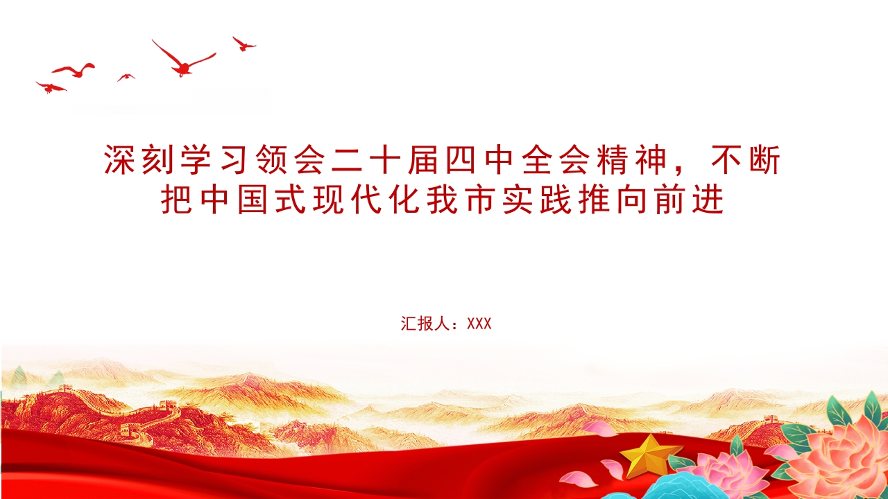 党课PPT:深刻学习领会党的二十届四中***精神,不断把中国式现代化我市实践推向前进+