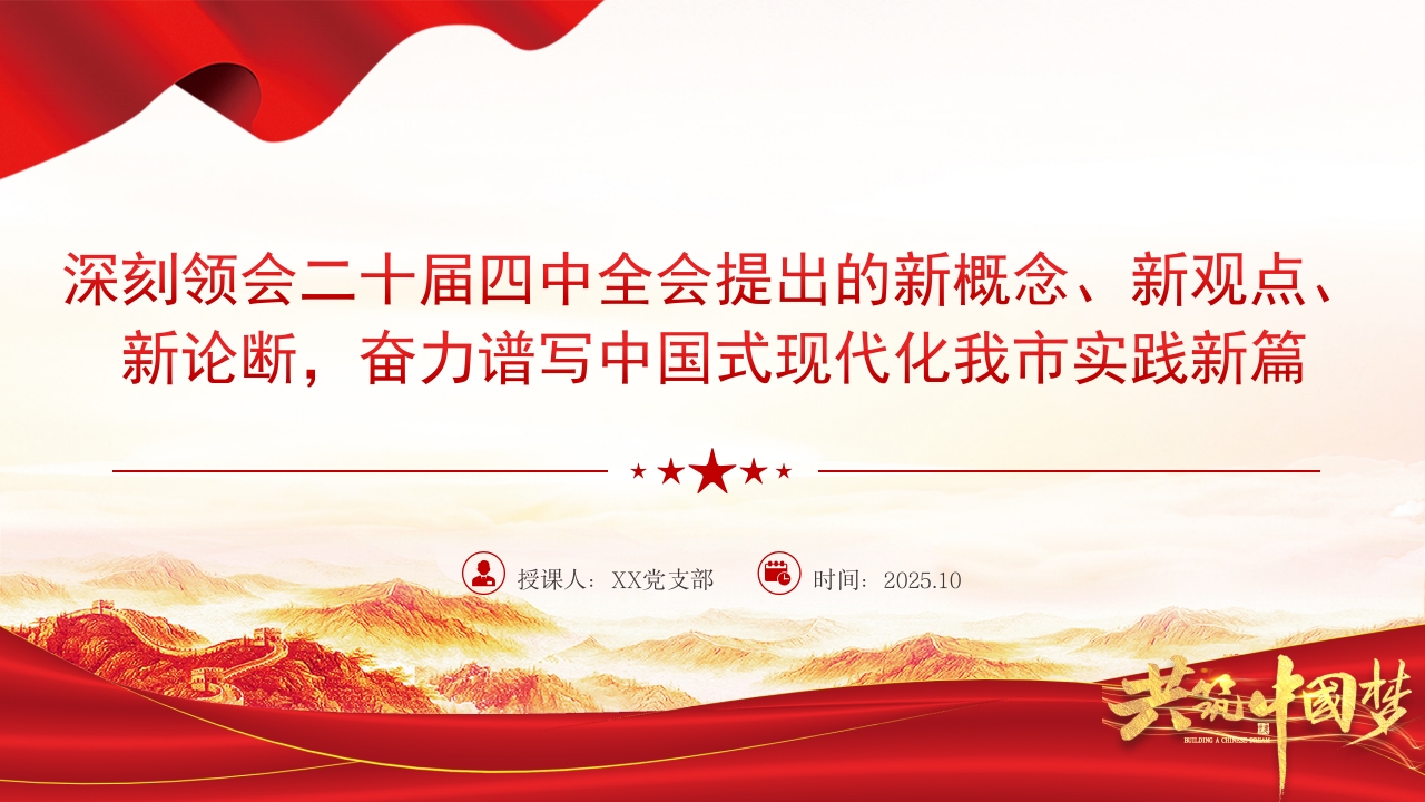 党课PPT:深刻领会二十届四中***提出的新概念、新观点、新论断,奋力谱写中国式现代化我市实践新篇