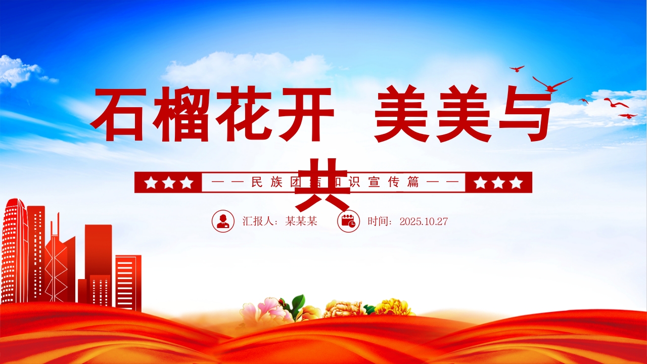 首页PPT模板大气精美石榴花开美美与共PPT民族团结知识宣传课件下载