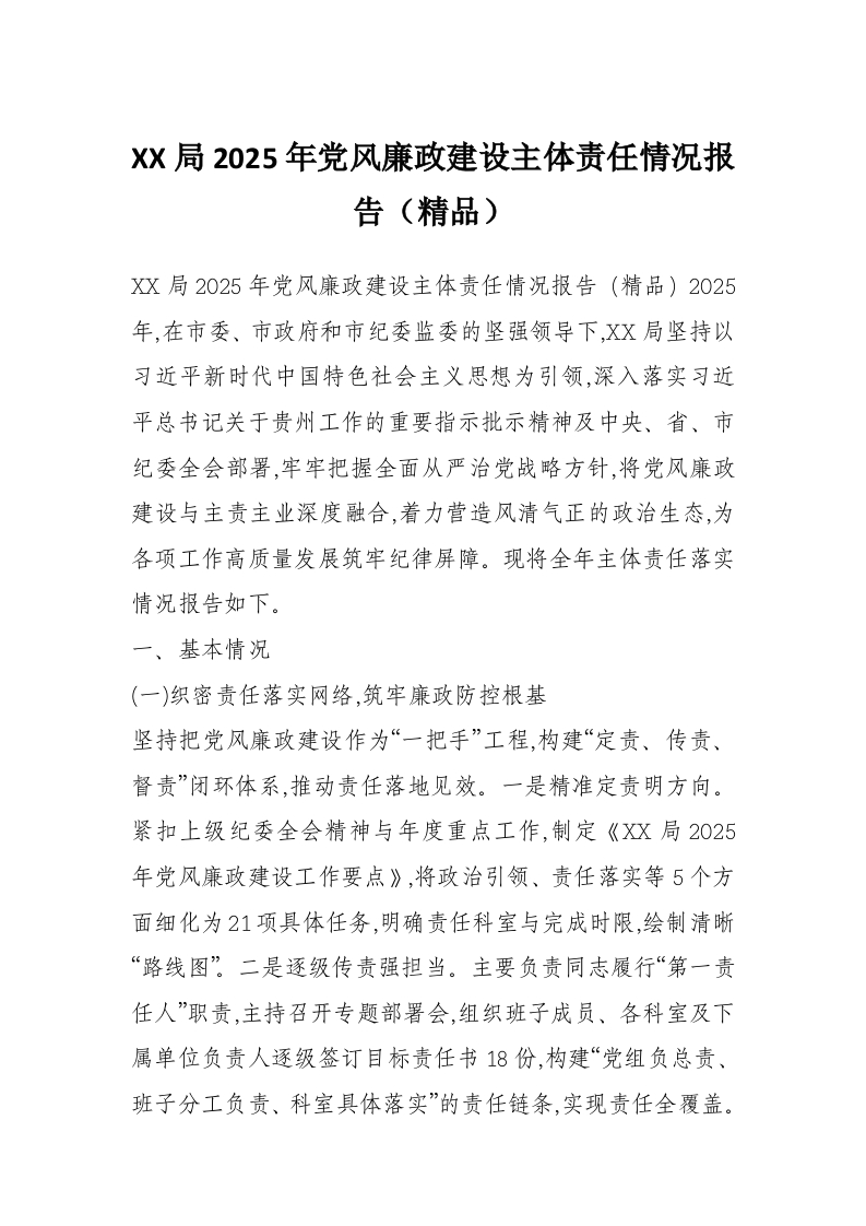 XX局2025年党风廉政建设主体责任情况报告(精品)