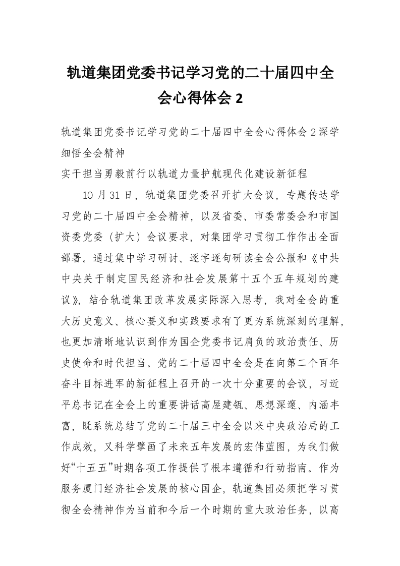 轨道集团党委书记学习党的二十届四中***心得体会2