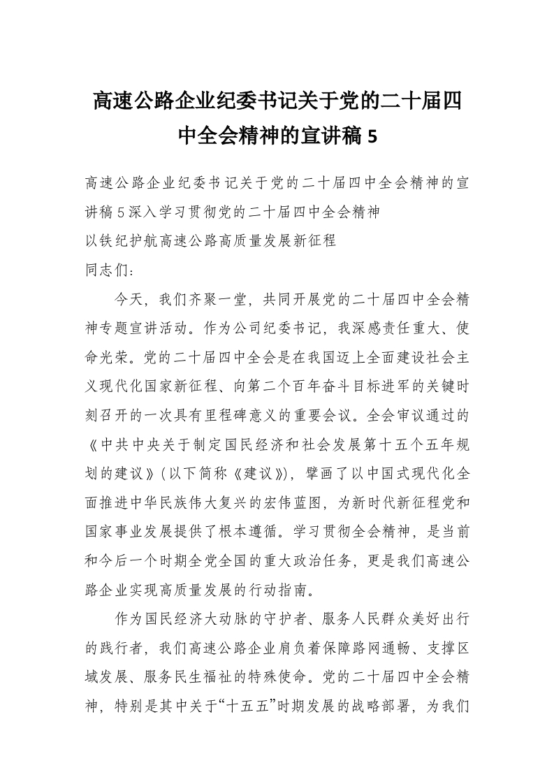 高速公路企业纪委书记关于党的二十届四中***精神的宣讲稿5
