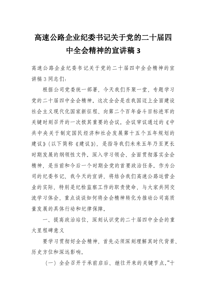高速公路企业纪委书记关于党的二十届四中***精神的宣讲稿3