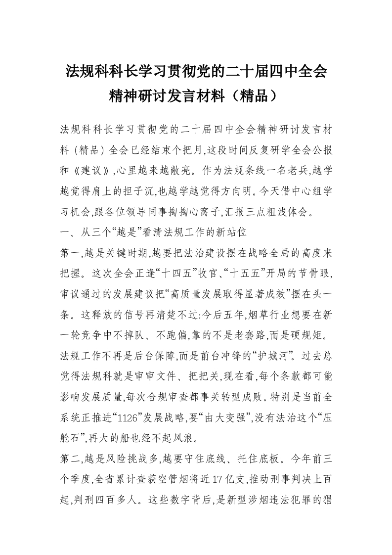 首页写作素材法规科科长学习贯彻党的二十届四中***精神研讨发言材料(精品)