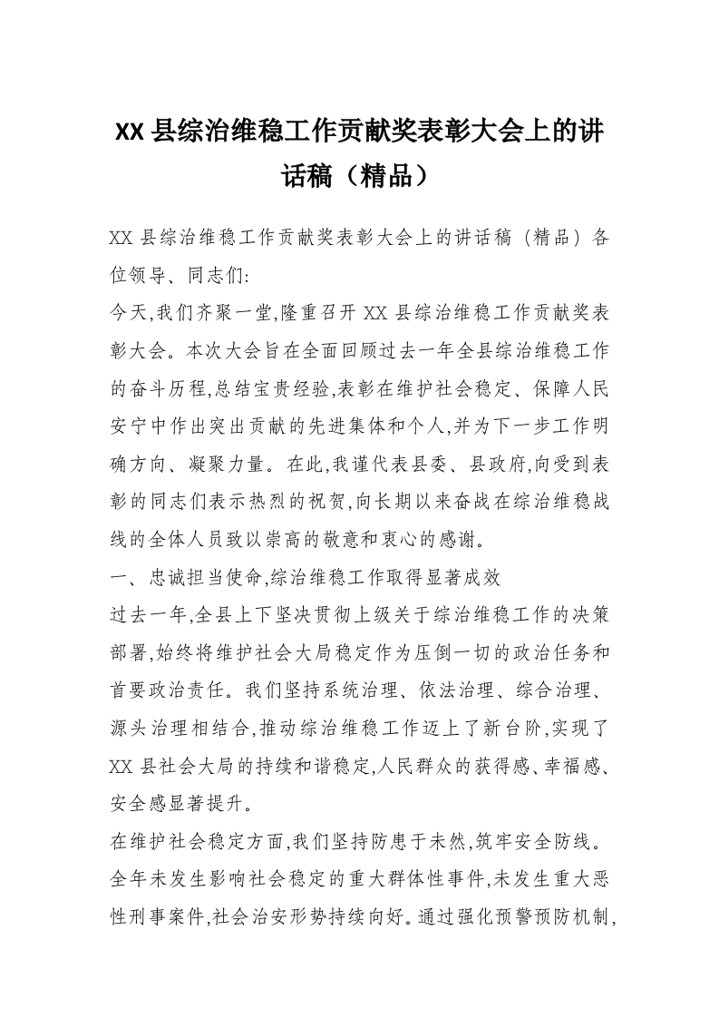 XX县综治维稳工作贡献奖表彰大会上的讲话稿(精品)
