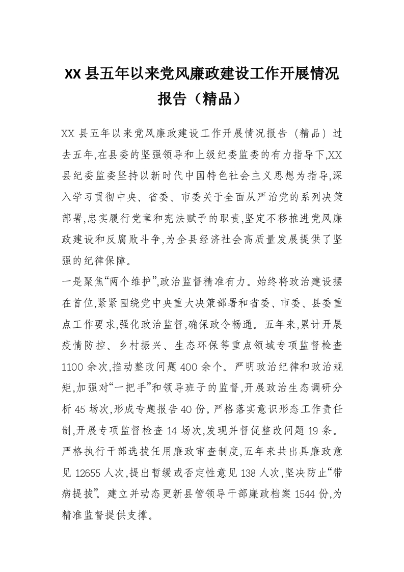 XX县五年以来党风廉政建设工作开展情况报告(精品)