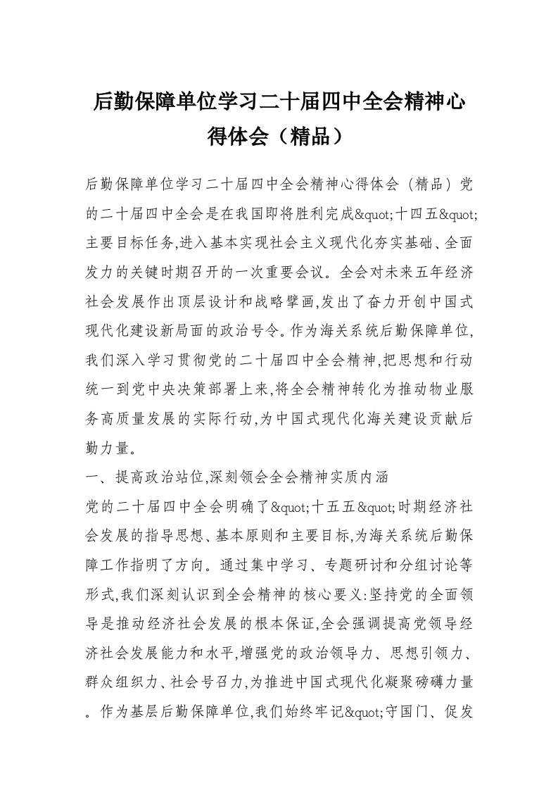 后勤保障单位学习二十届四中***精神心得体会(精品)